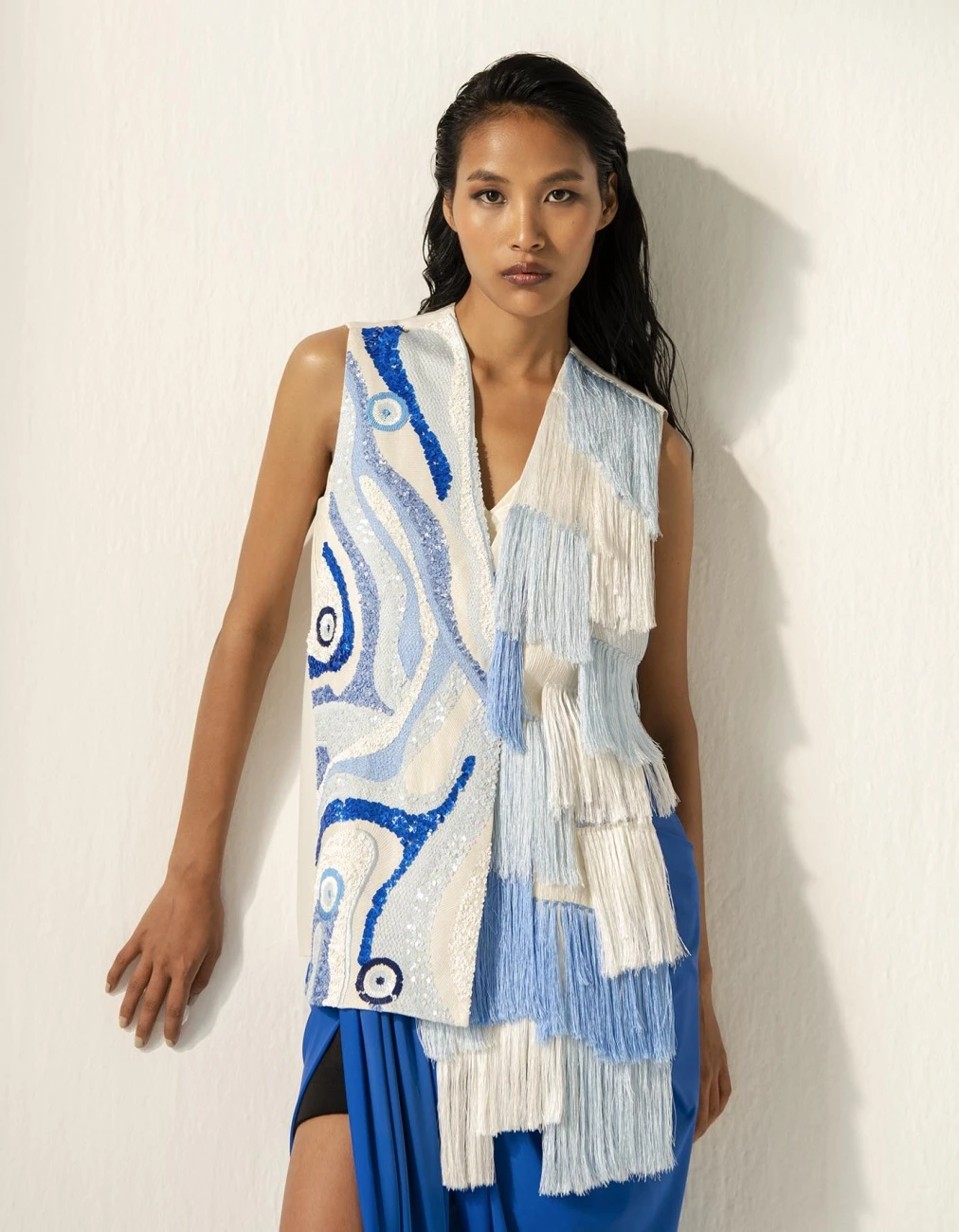 - Evil Eye Tassle Gilet With Quilted Inner And Drape Skirt
