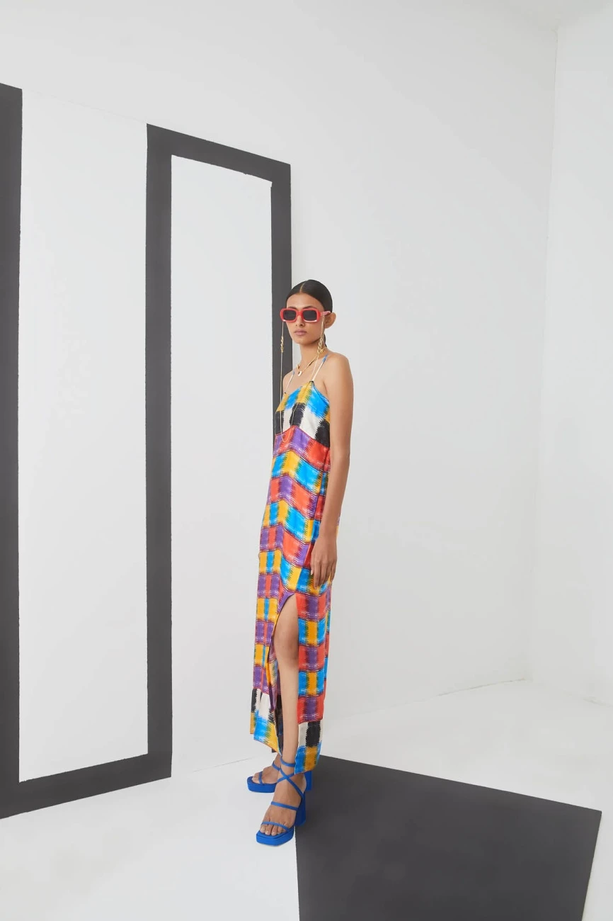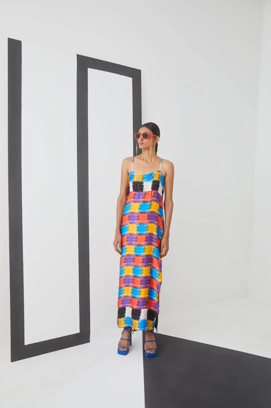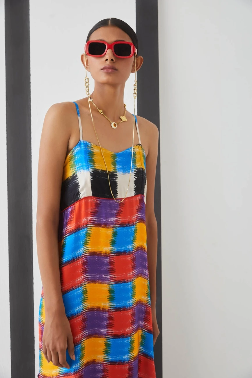 - Made in modern Ikat check print