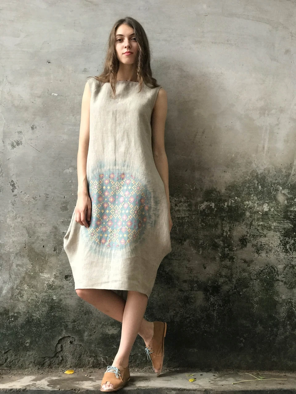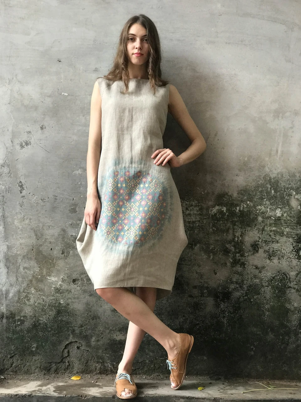 - Beige mint tie & dyed , cowl & ikat printed dress cum kurta