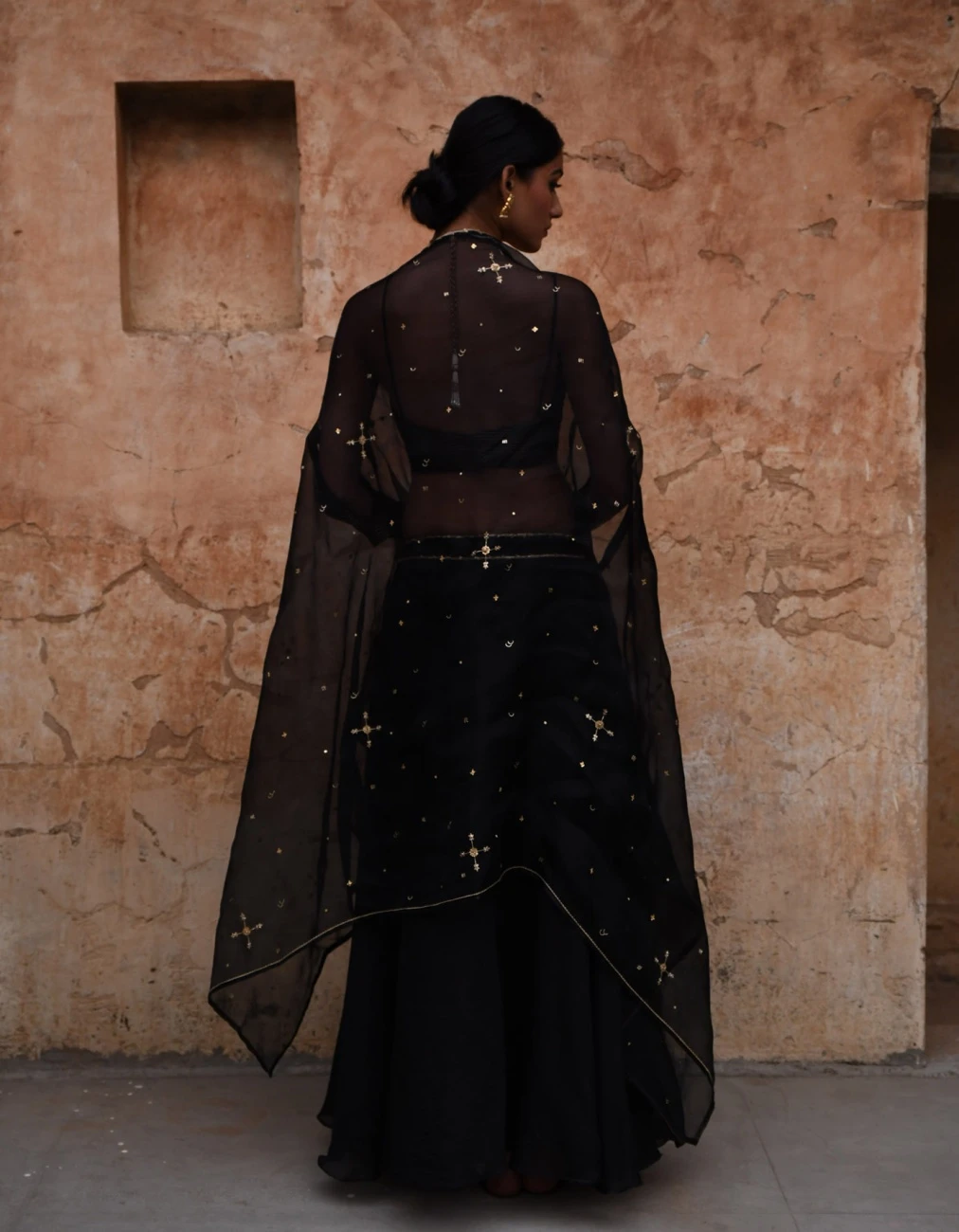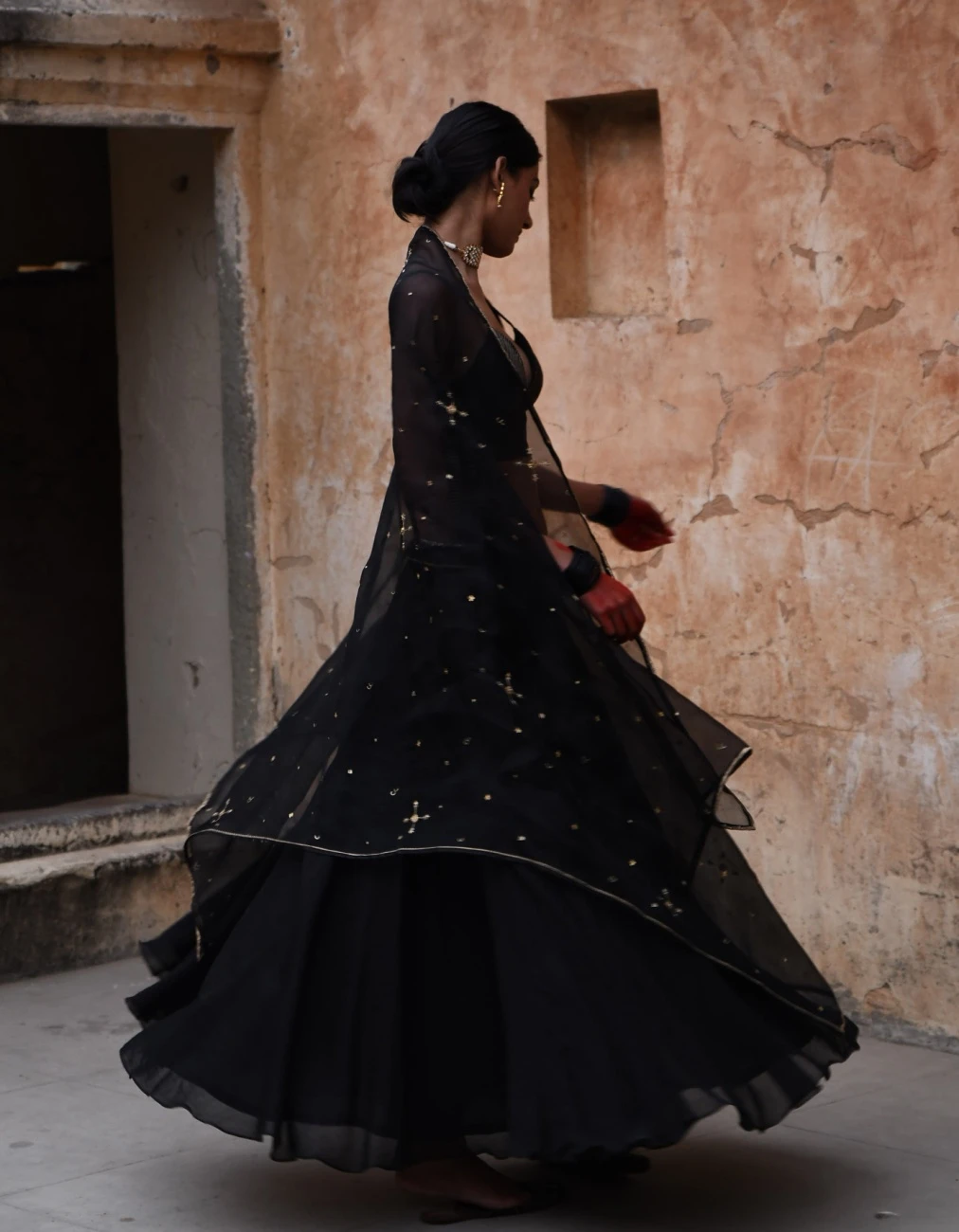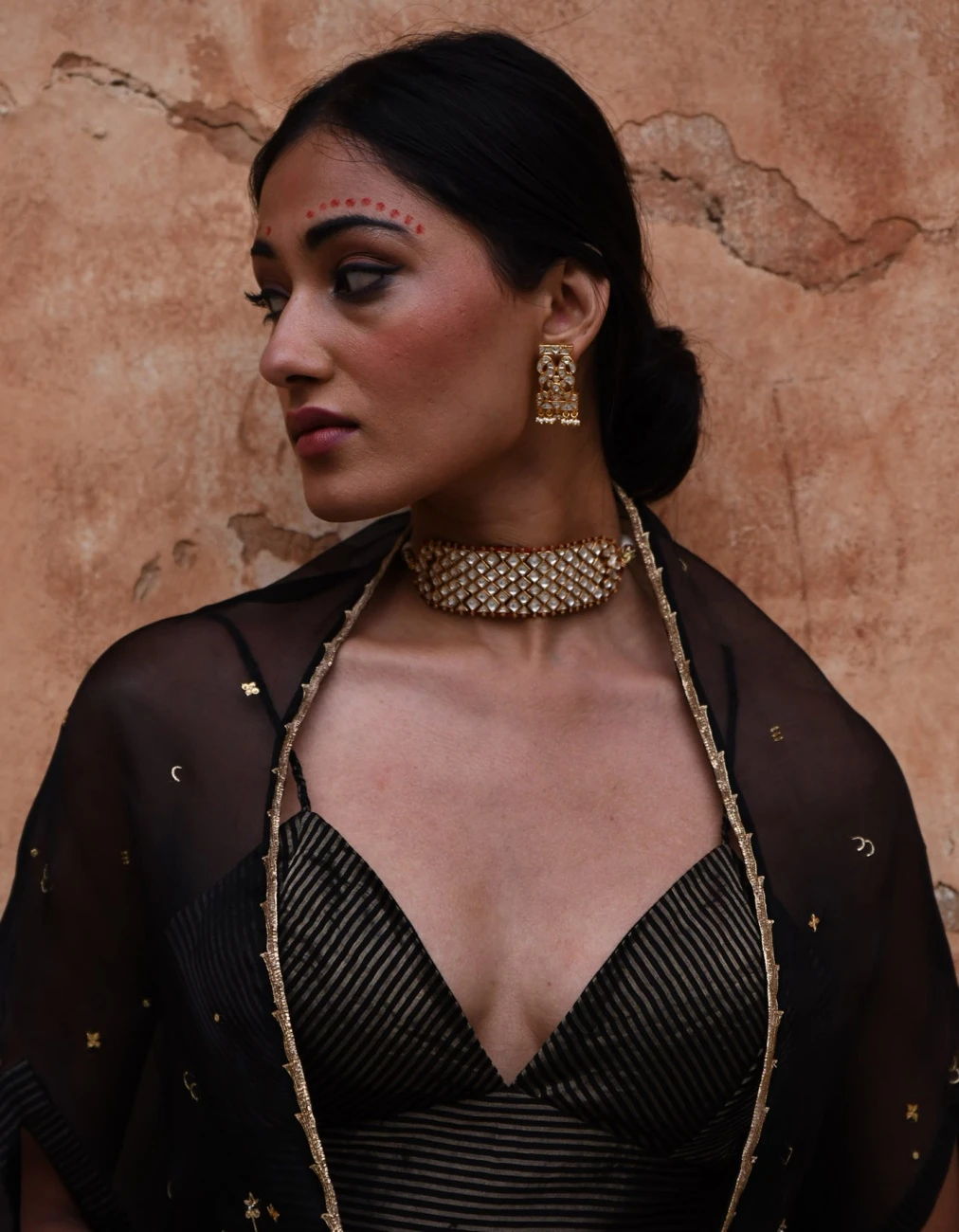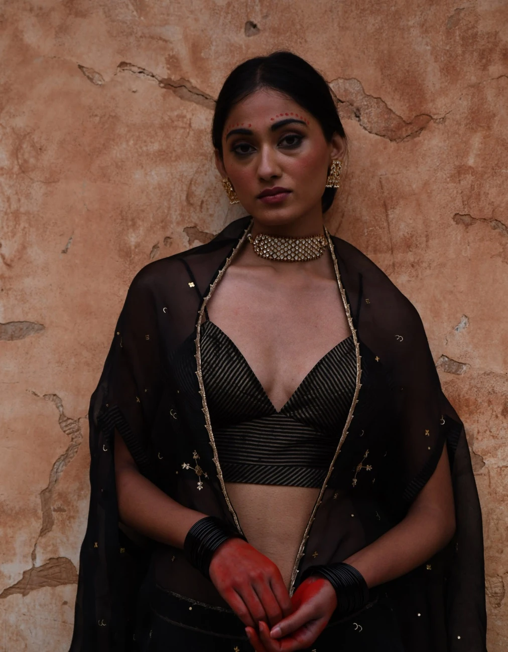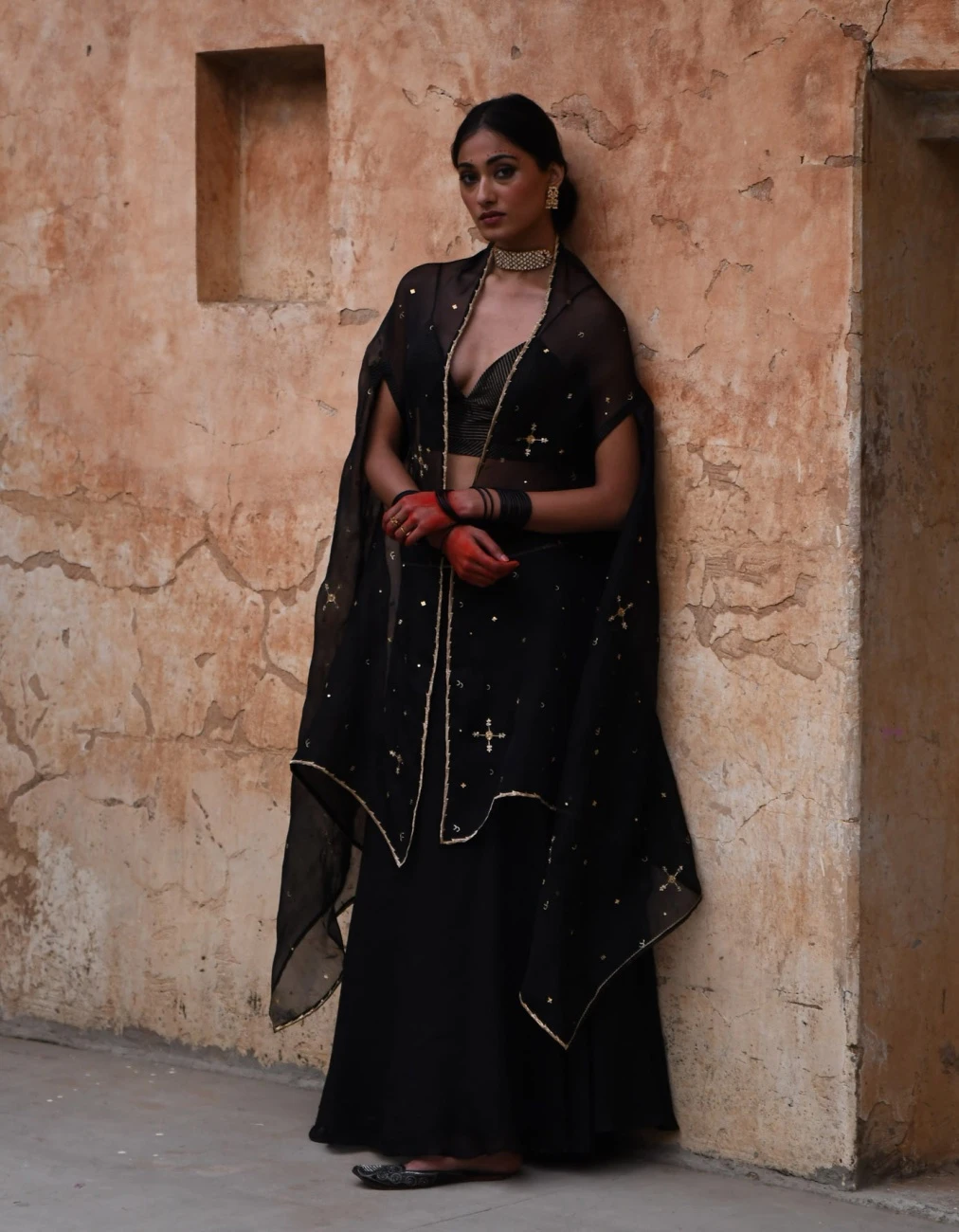 - All over nakshatra boota embroidered in zardosi, sequnce and zari on the cape