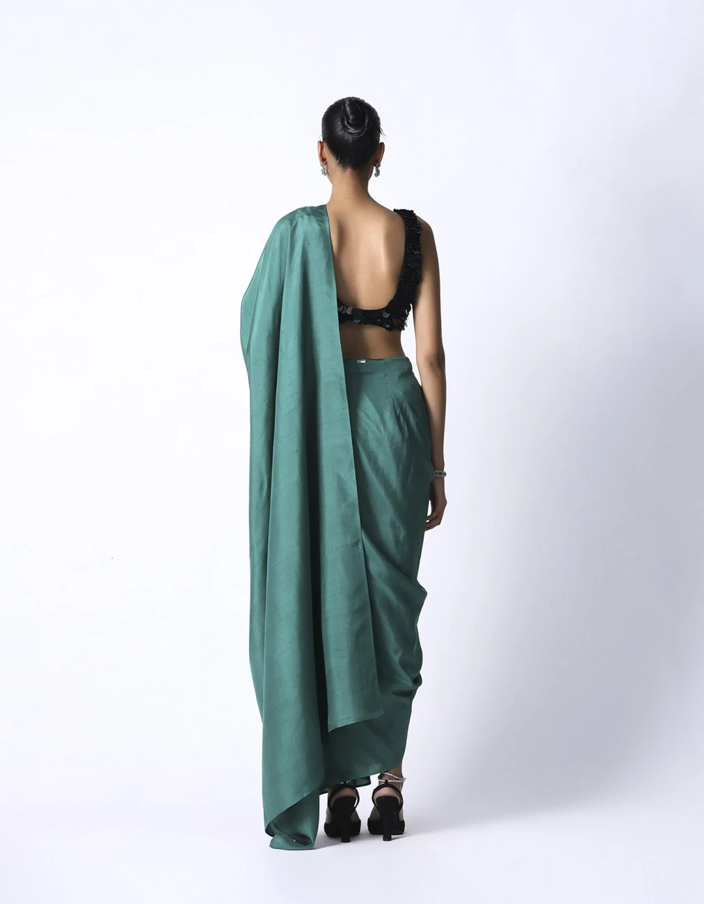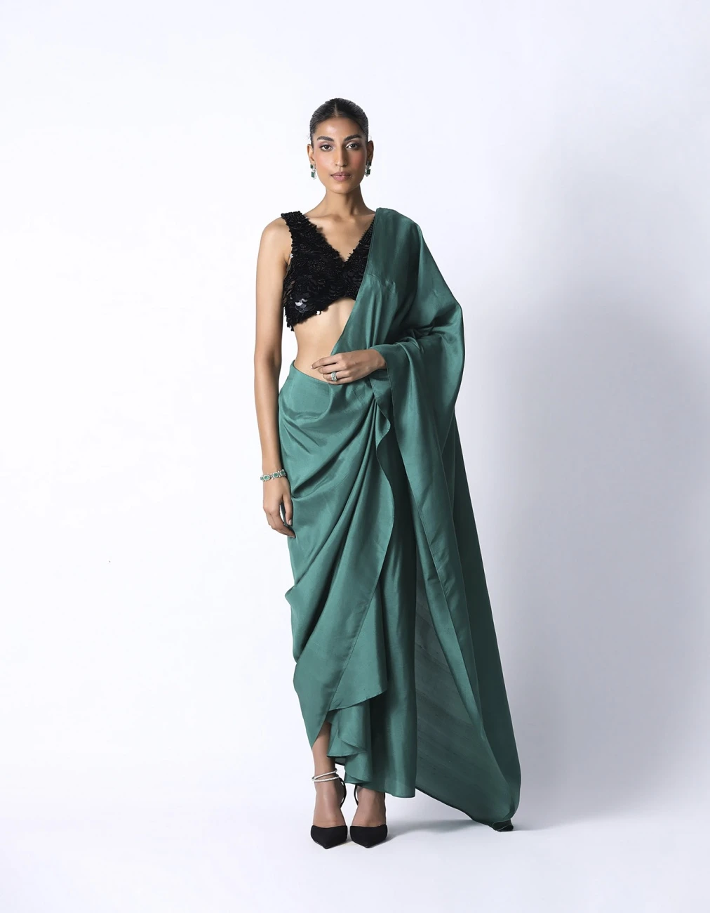 - The Gill Blouse is that classic sexy blouse you need in your wardrobe. It is hand embroidered with round sequins of different sizes. Designed with a deep V neck and a curved shaped hemline. Closes at the back with hooks, it works as a great option to either wear with your saris or with pants for a cool modern look.