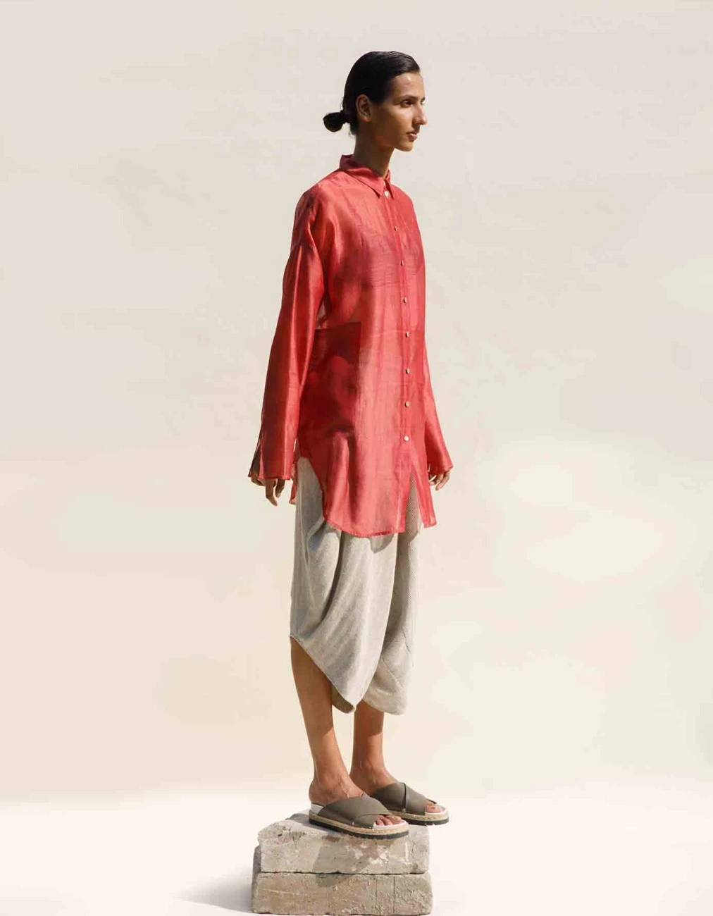 - Buttoned-down, tailored sheer shirt in chanderi.