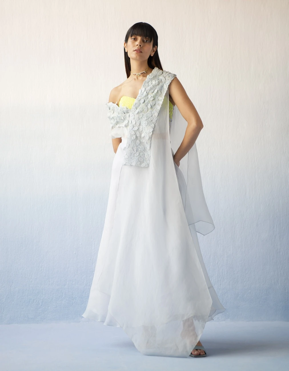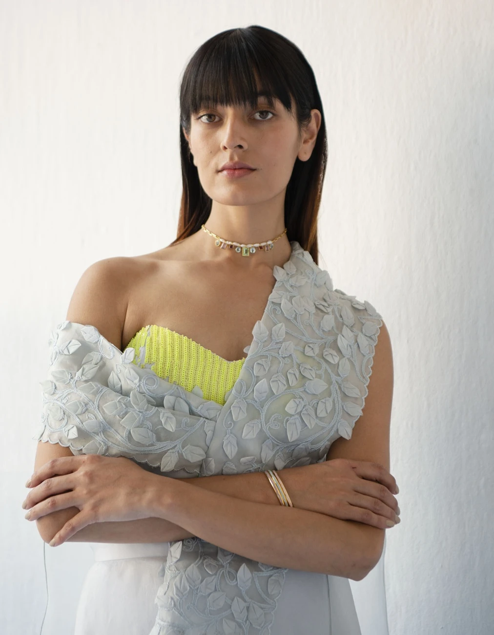 - Top – Sequinned fabric and tafetta , Overlay – Organza , Skirt – Organza, bamberg silk and tafetta