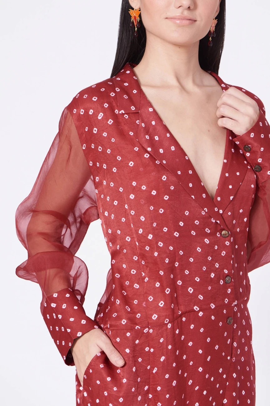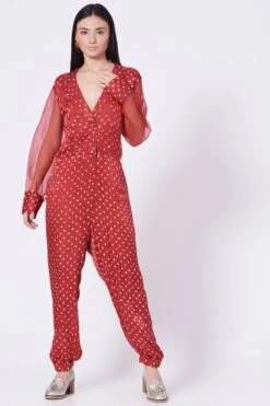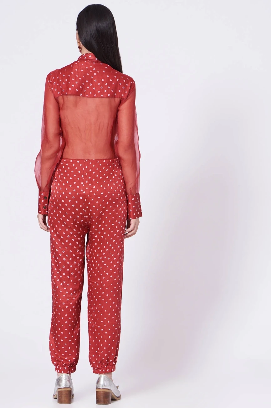 Dark Pink Bandhani Silk And Organza Jumpsuit