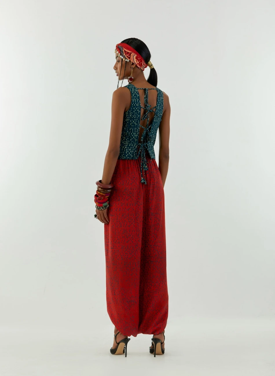- Texture print bhumi corset blouse with front embroidery and tie ups at back