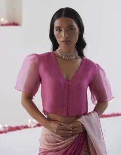 - The Fleeting Moments blouse is crafted in handwoven organza silk, featuring scalloped embroidery edges all over