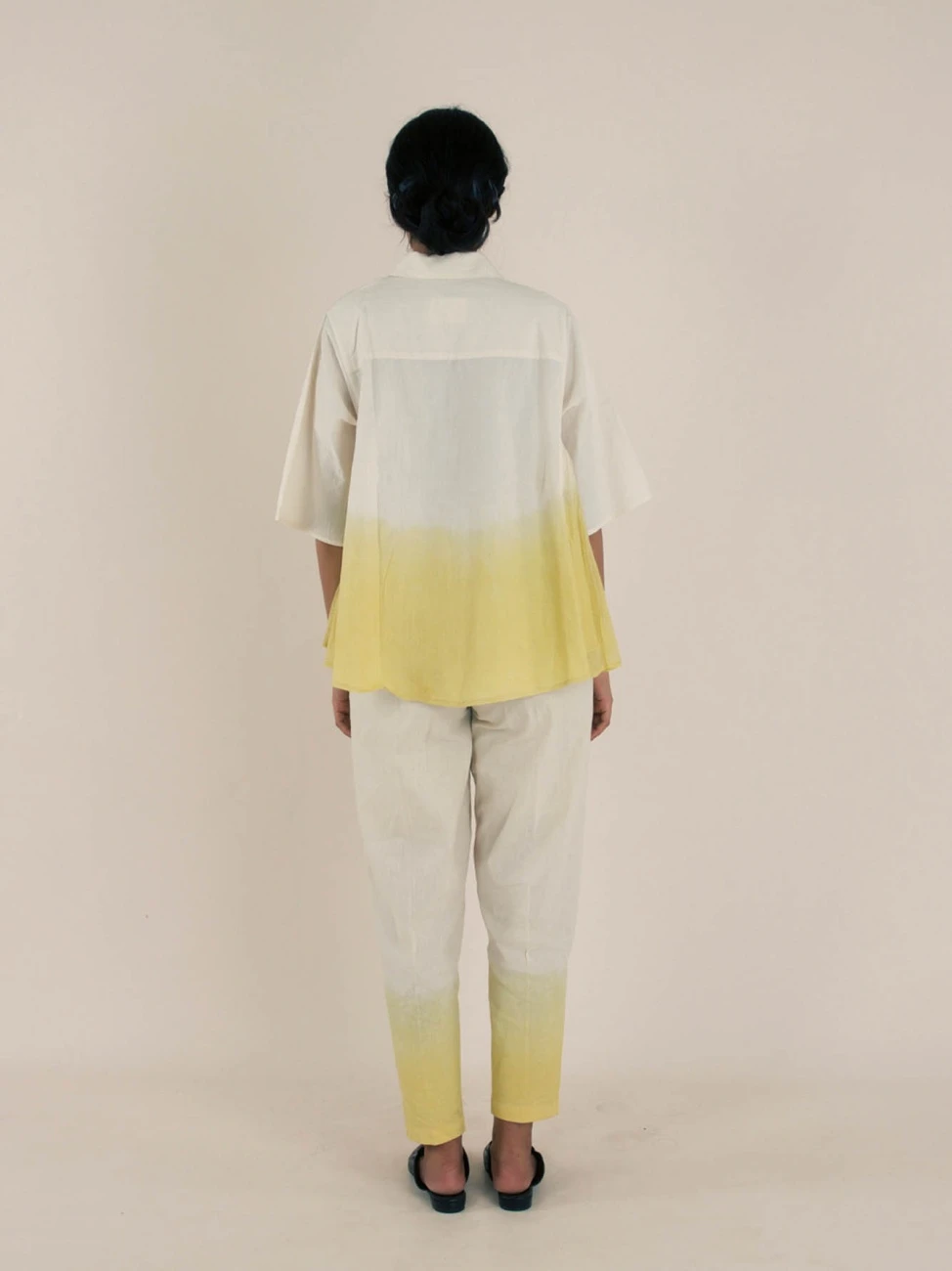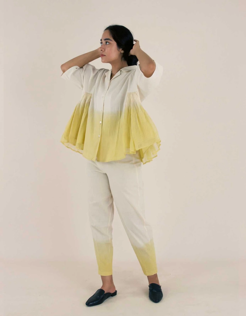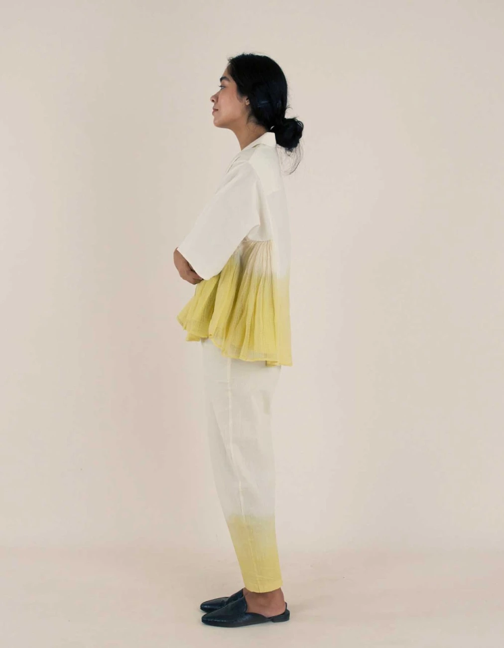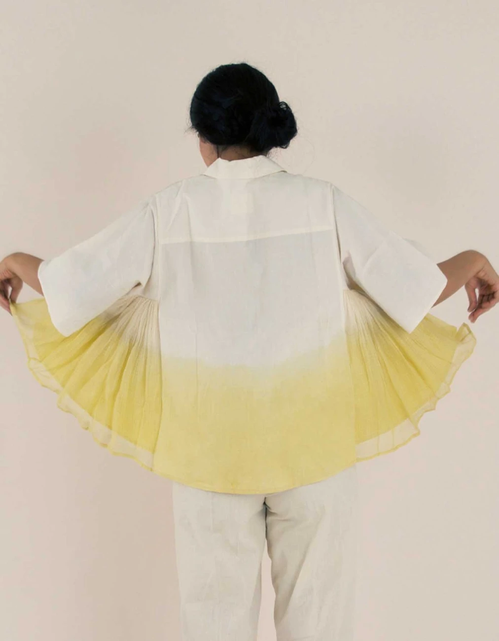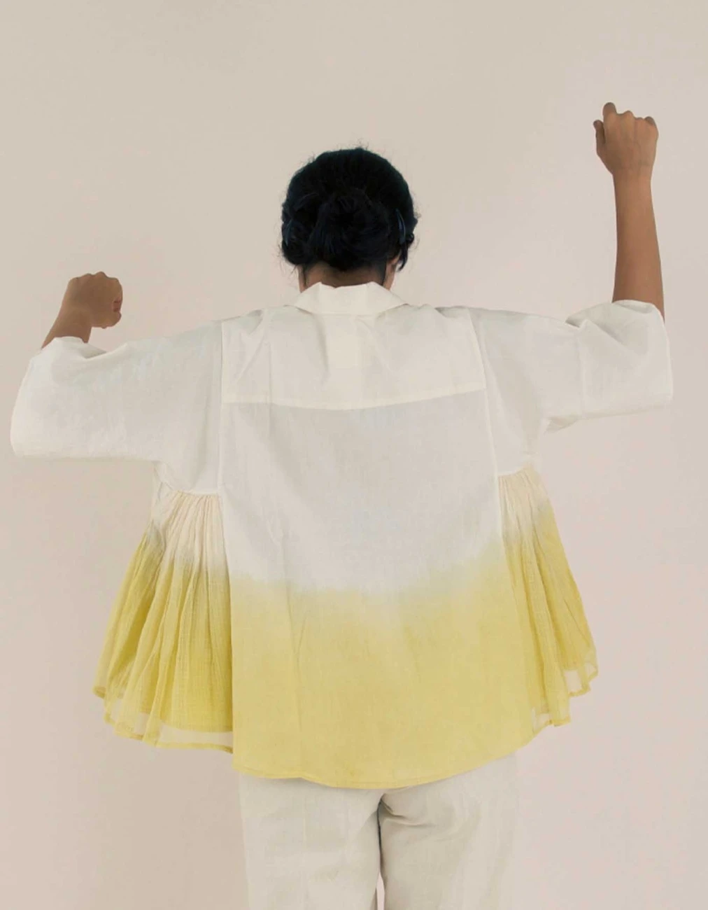 - Kalidhar Shirt with gathered semi-sheer kota doria on the side, dip-dyed to create an ombre effect