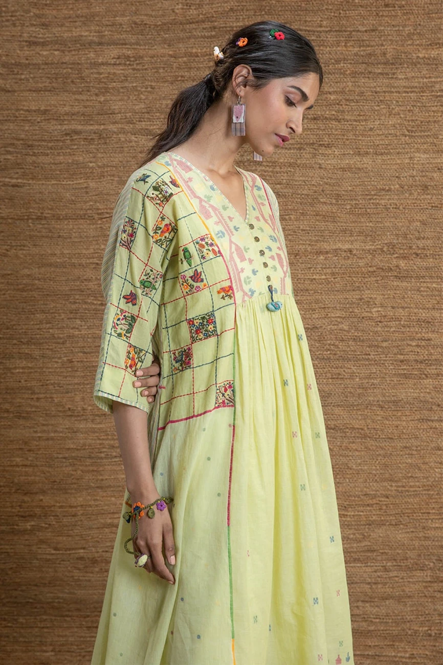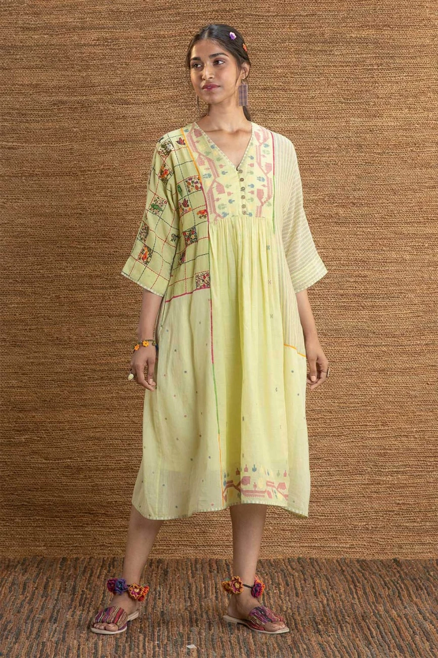 - Fabric-dress – fine handwoven jamdani muslin slip – mul cotton