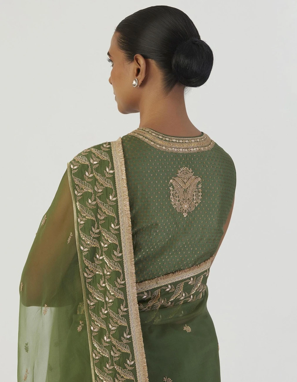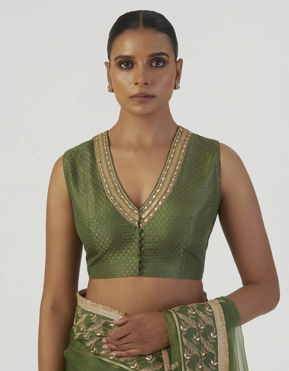 - Parineeta blouse is crafted in handwoven green brocade silk