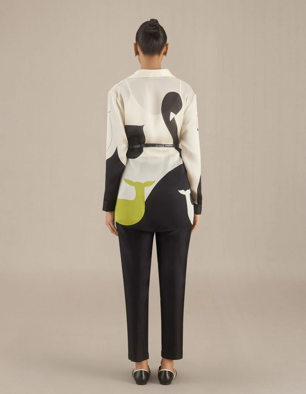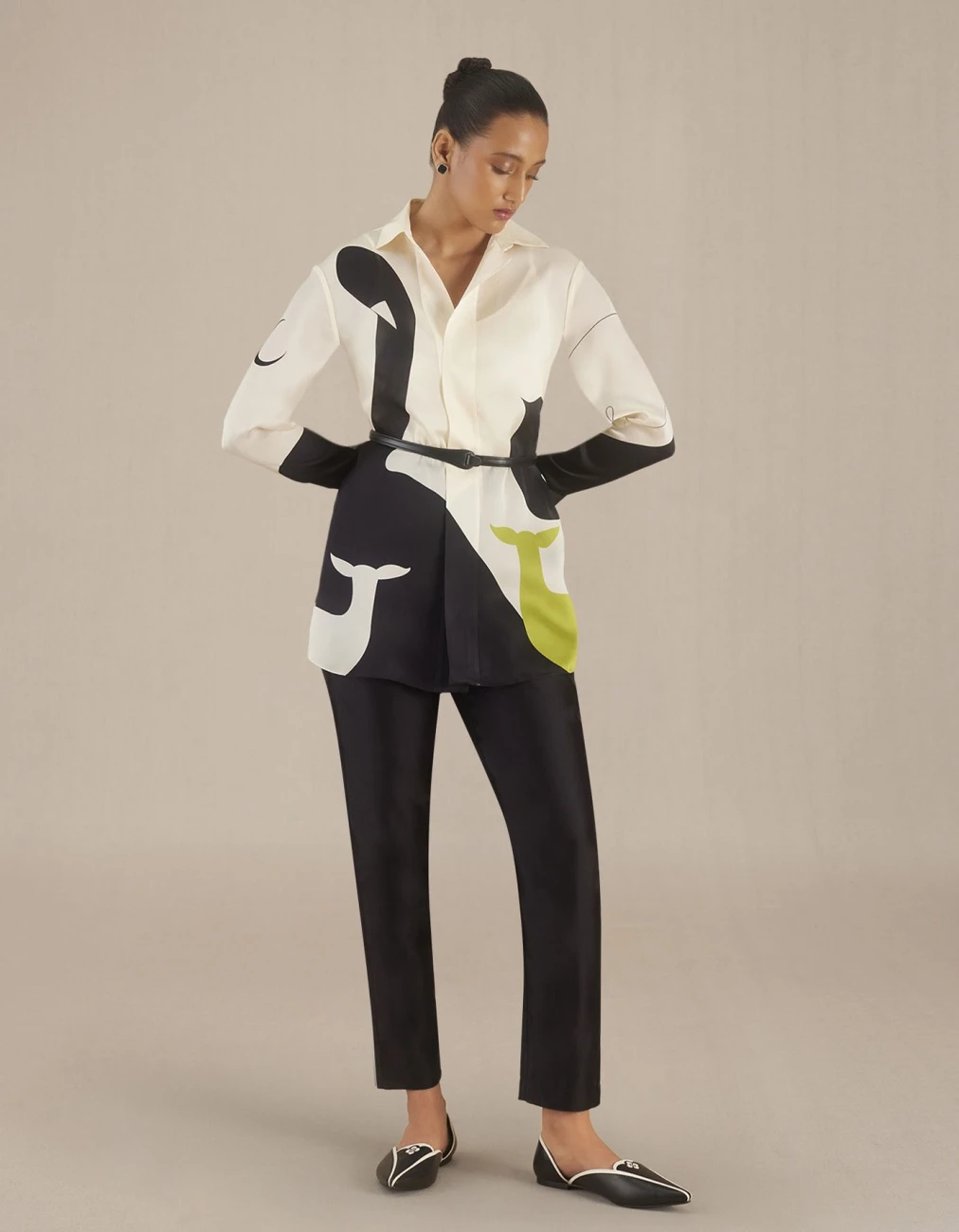 - Crafted from the softest satin, Yamna shirt in black and ivory
