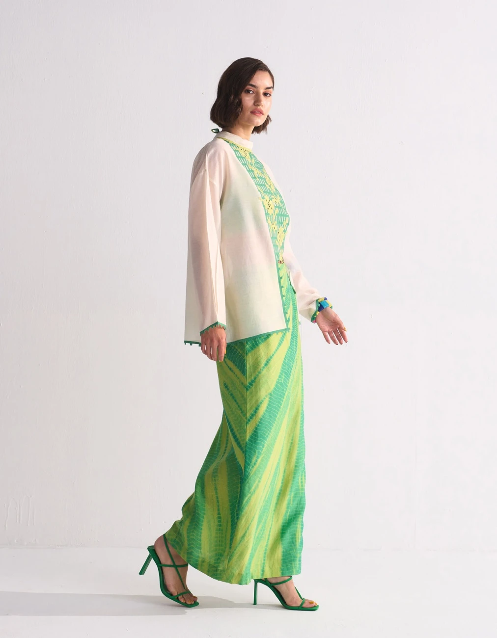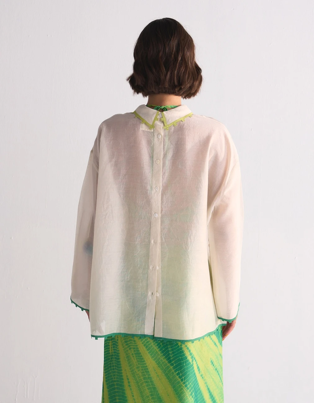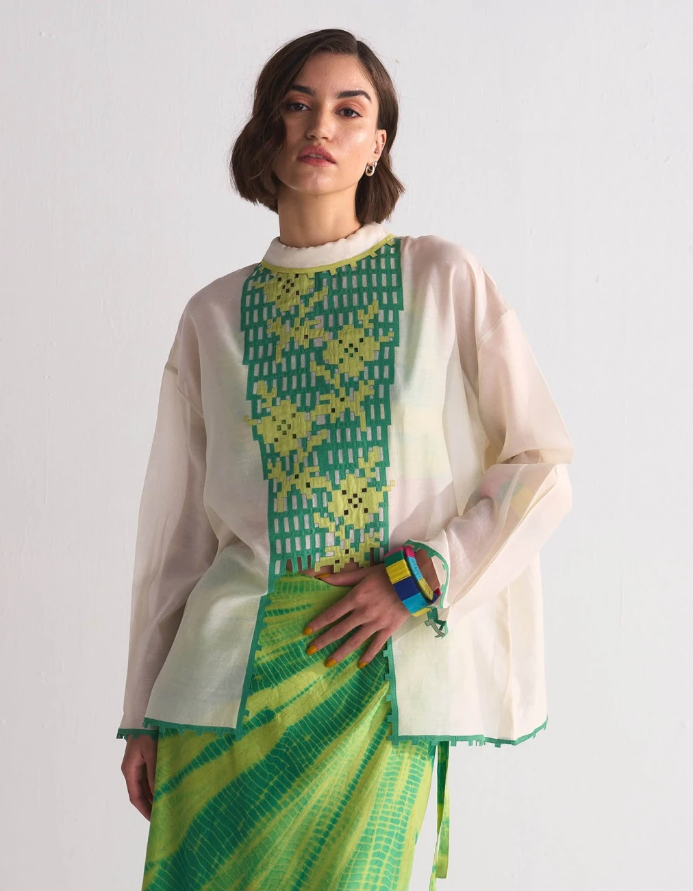 Ivory Yoke Cutwork Reverse Collar Shirt