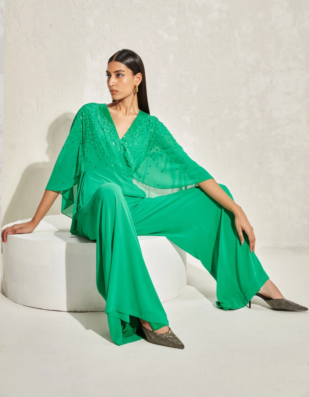 Kelly Green Metallic Quad Batwing Jumpsuit