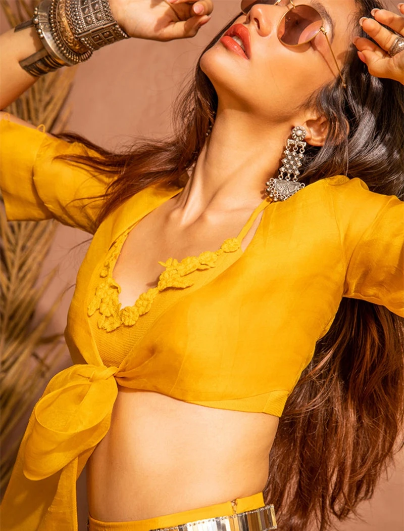 - Paired with a full ankle length skirt embroidered withy tiny planters
