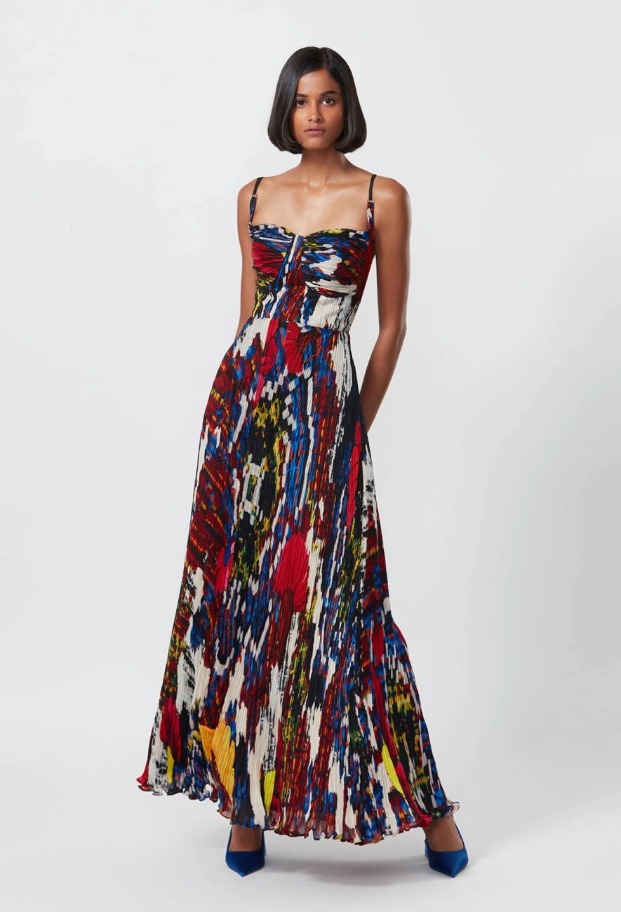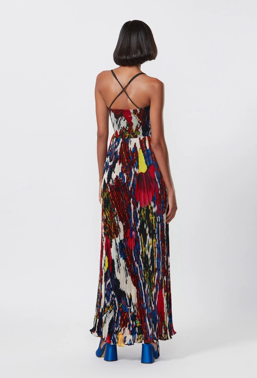 - Dress : Abstract Floral Print Hand Micro Pleated Maxi Dress With Adjustable Straps
