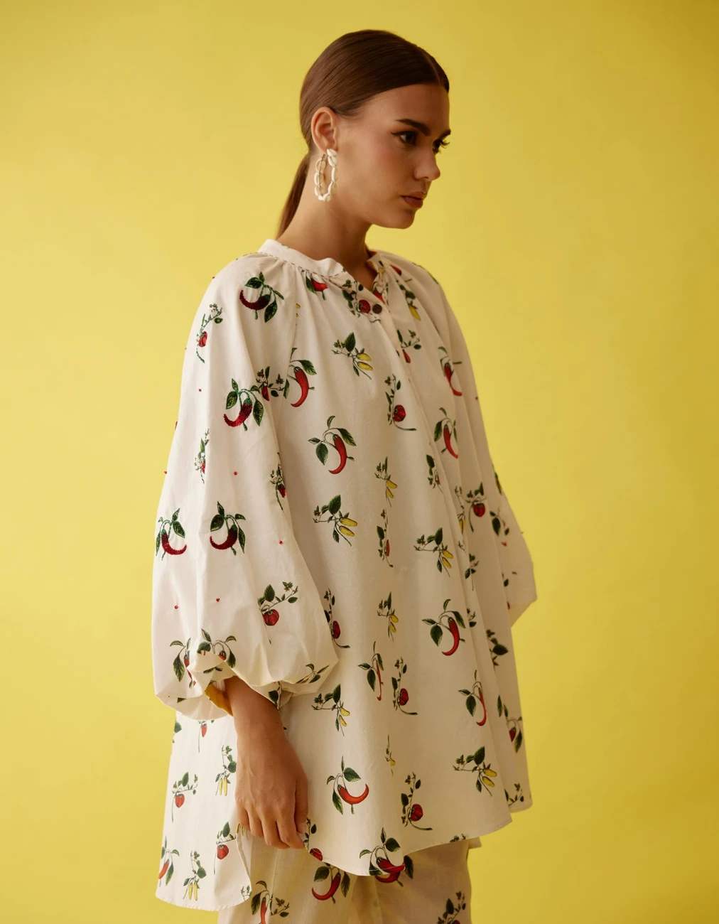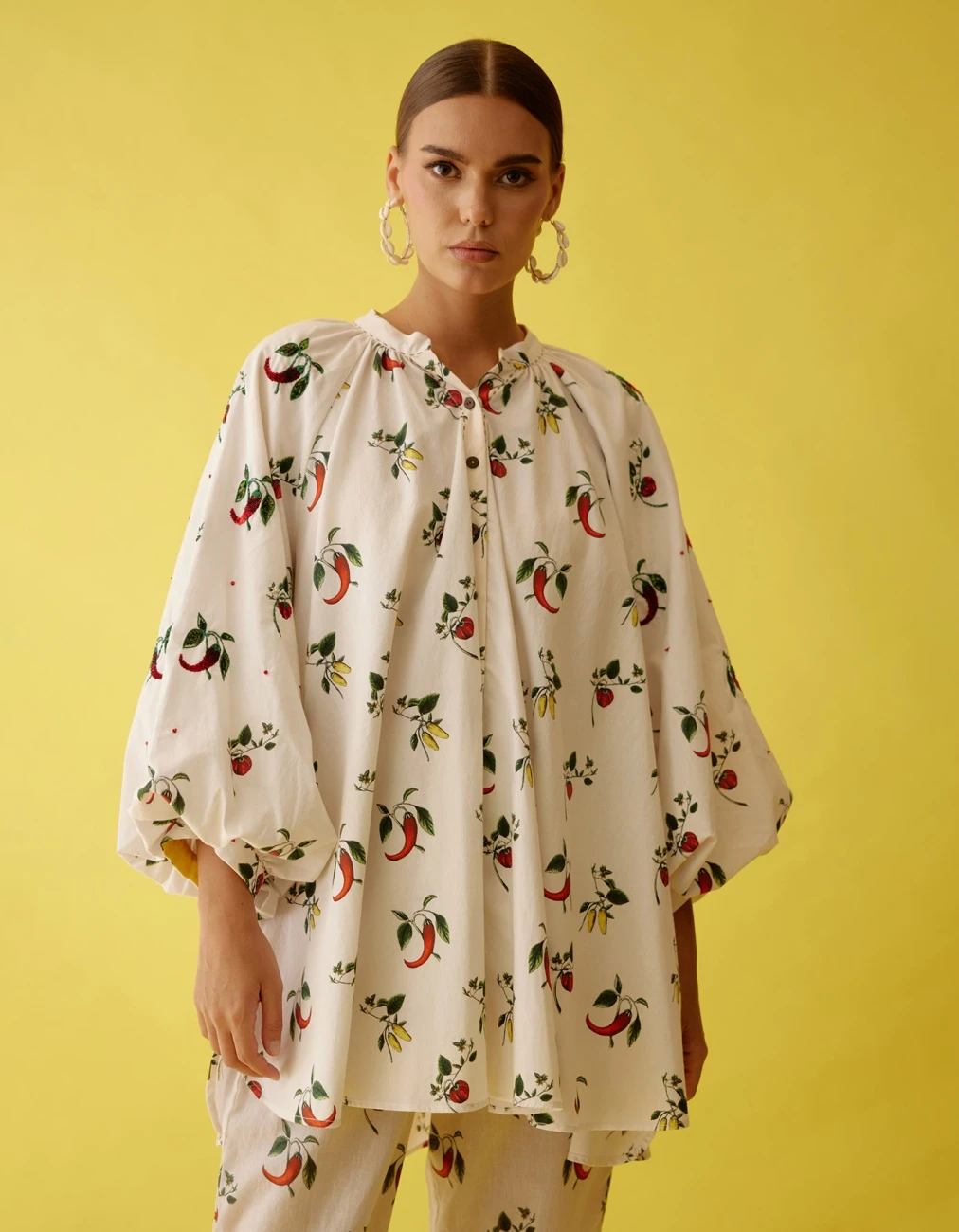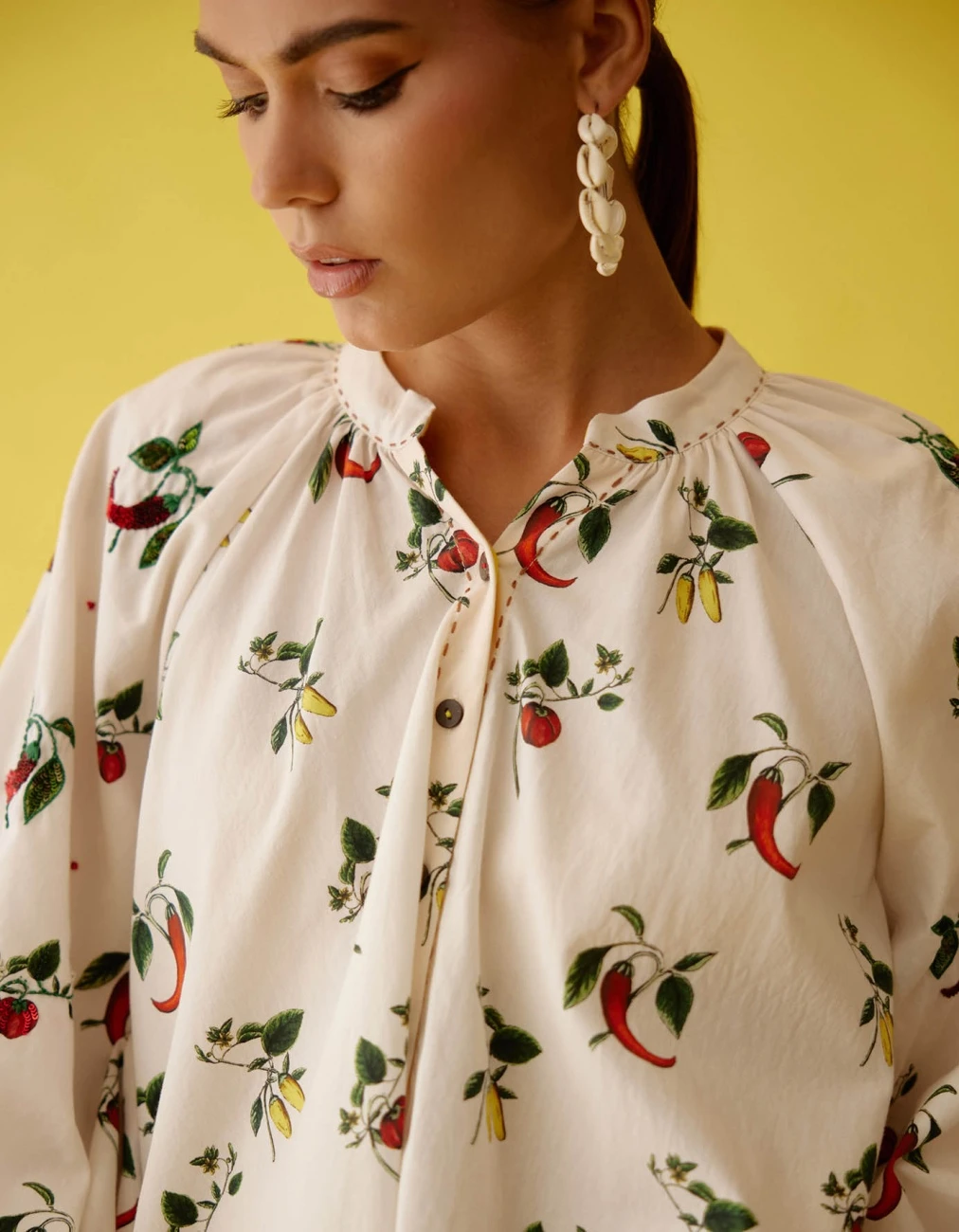 - Off White Hand Painted Chilli Print Raglan Sleeve Shirt