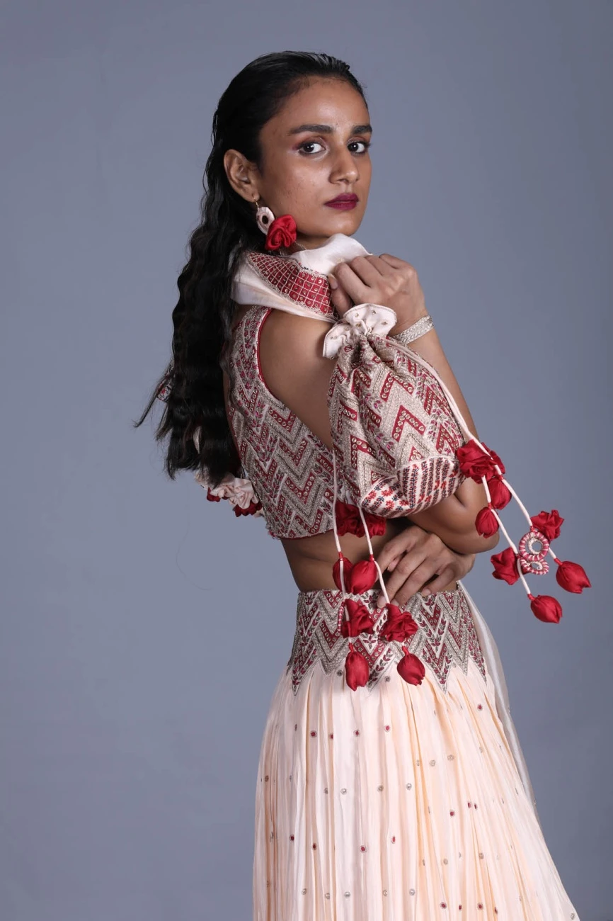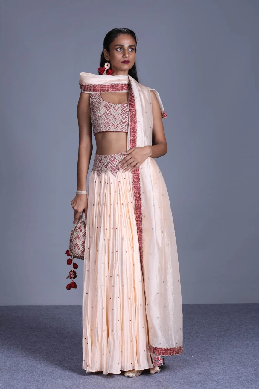 Peach Crushed Lehenga With Hand Embellished Blouse And Matching Dupatta