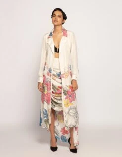 - Shirt Coat : Periwinkle Bandhani Print Long Shurt Style Jacket