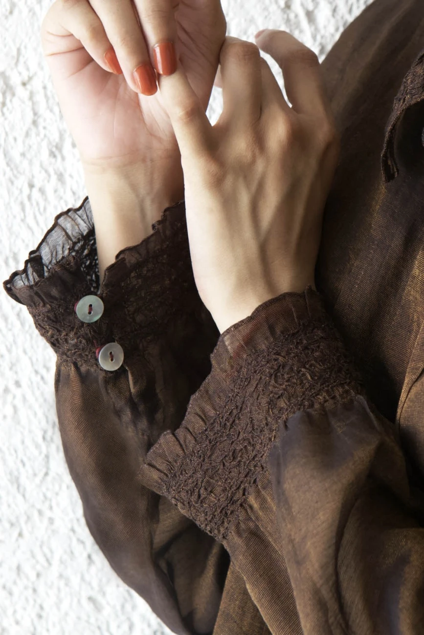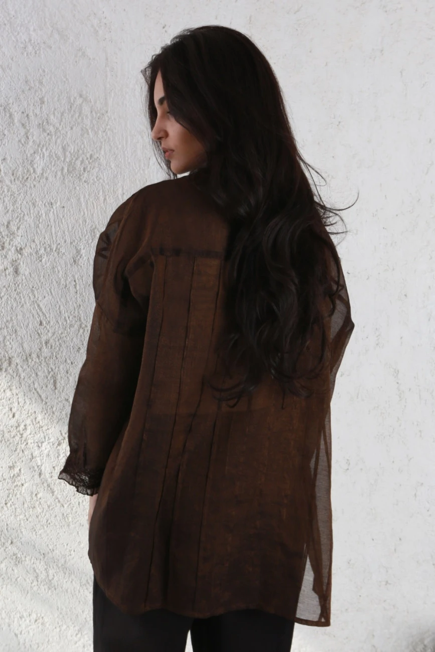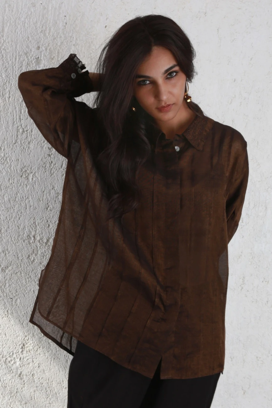 - A relaxed,Ā oversizedĀ shirtĀ pleatedĀ and scrunched in sheer metallic silk. It comes with an inner chemise in fine cotton.
