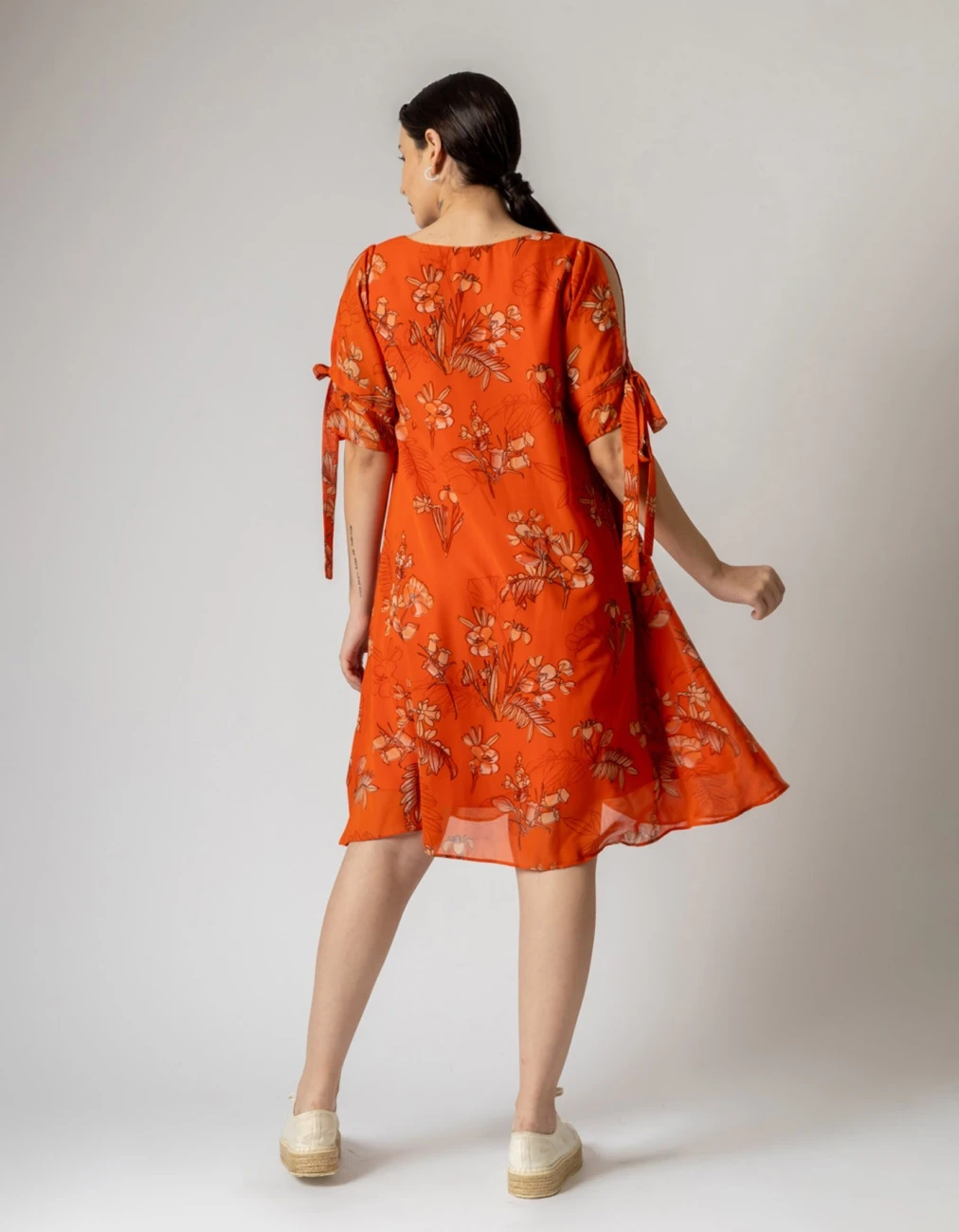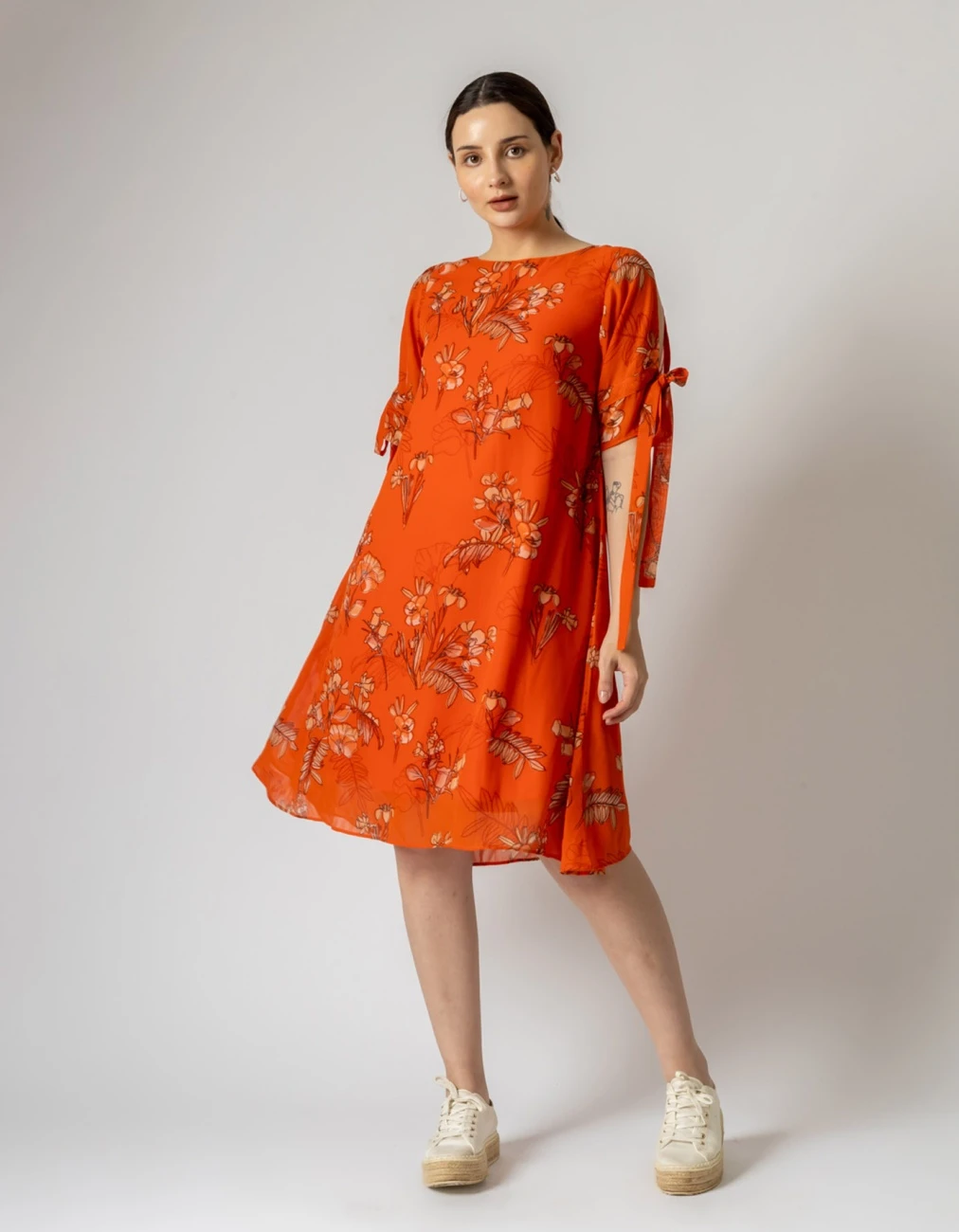 - Printed dress with tie-up details