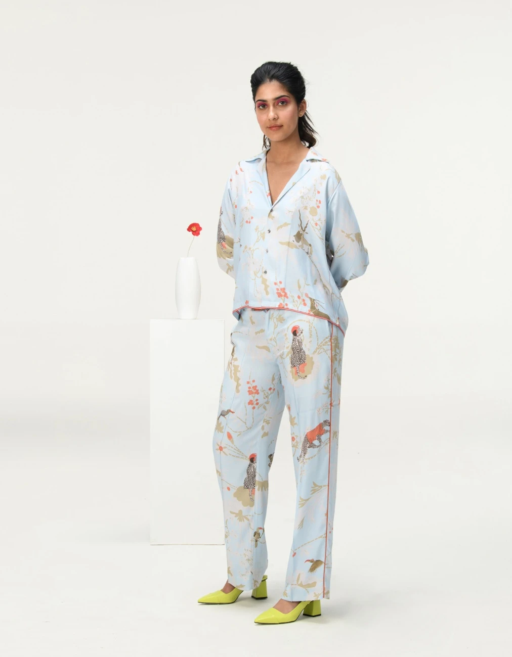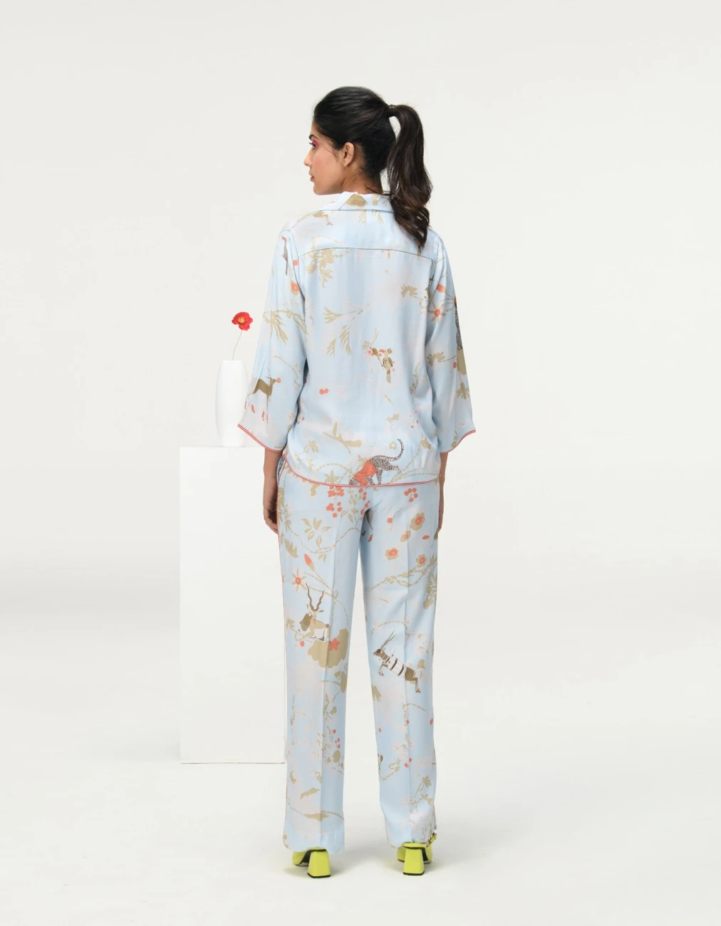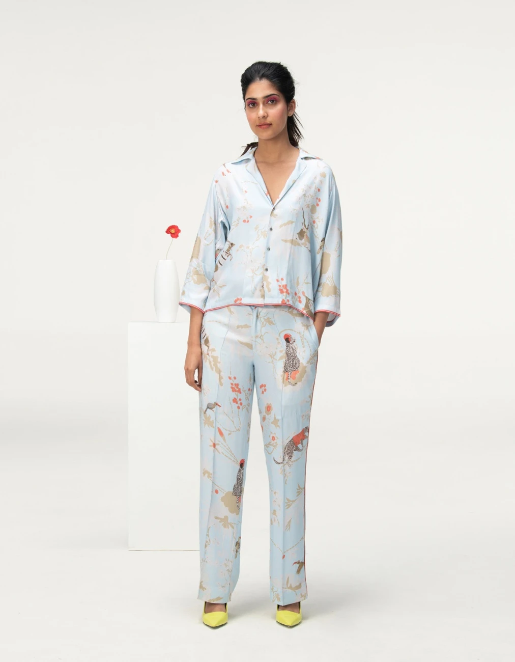 - Rainforest cuban ribbed shirt ice blue cotton silk twill