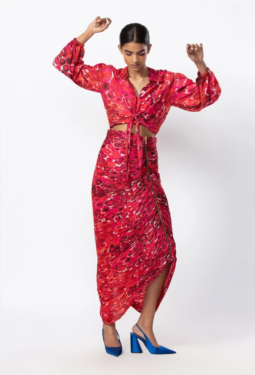 - Skirt : Hand Micro Pleated Skirt With Zipper Detailing