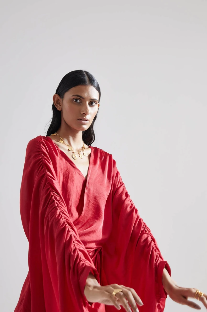 - Cut like a kaftan dress the dress flares out beautifully from the sleeves and sides