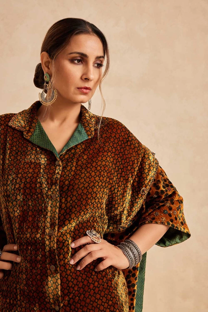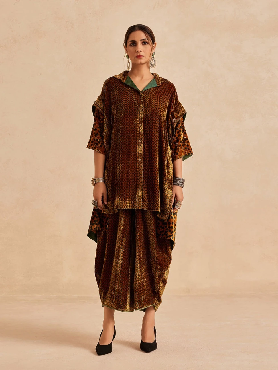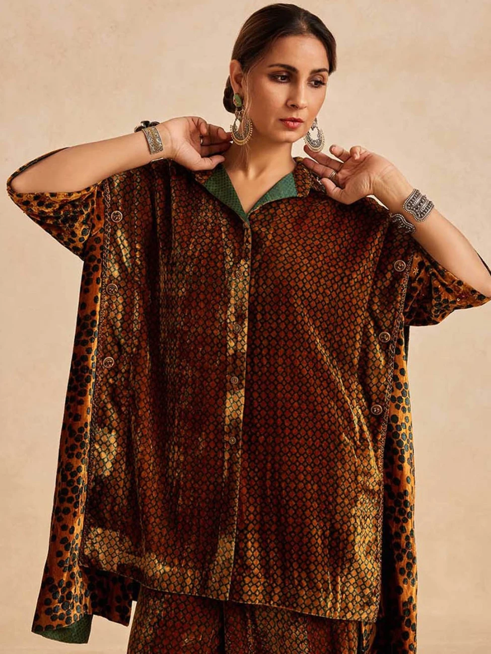 - Featuring shirt- hand-block ajrakh print using natural dyes, finished in modal silk in bagru hand-block print