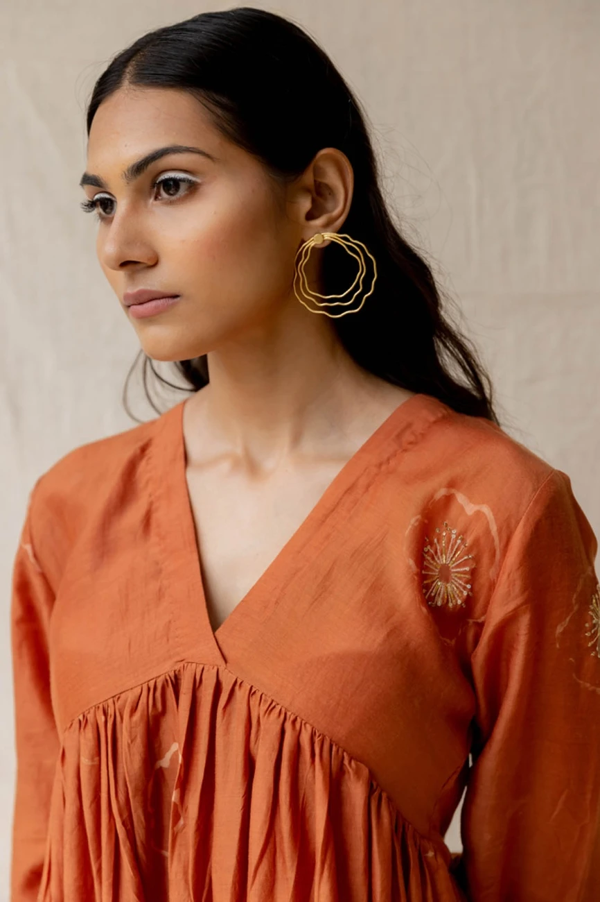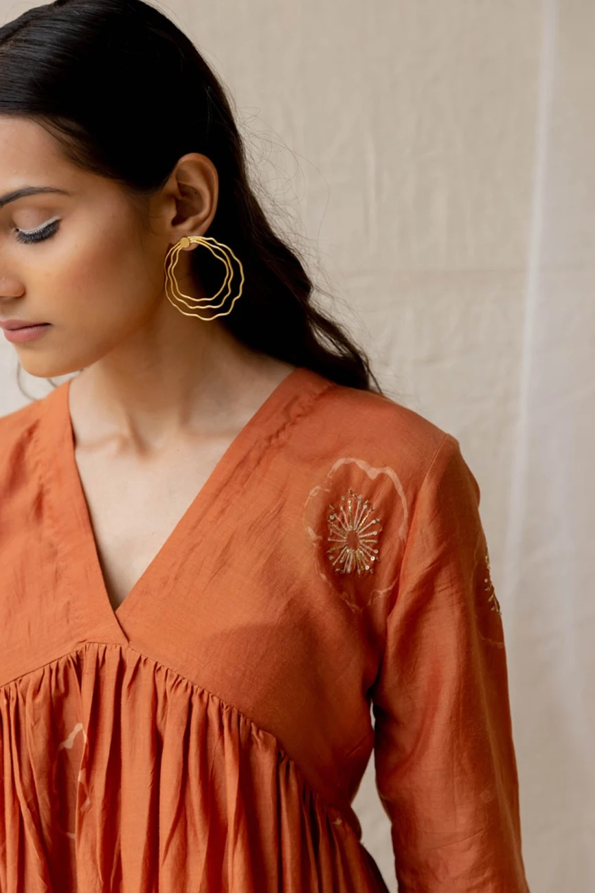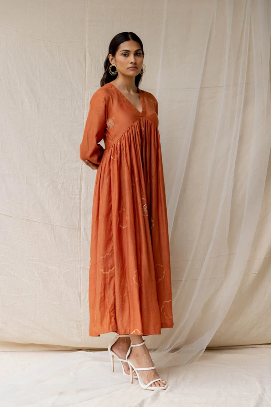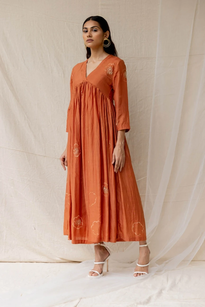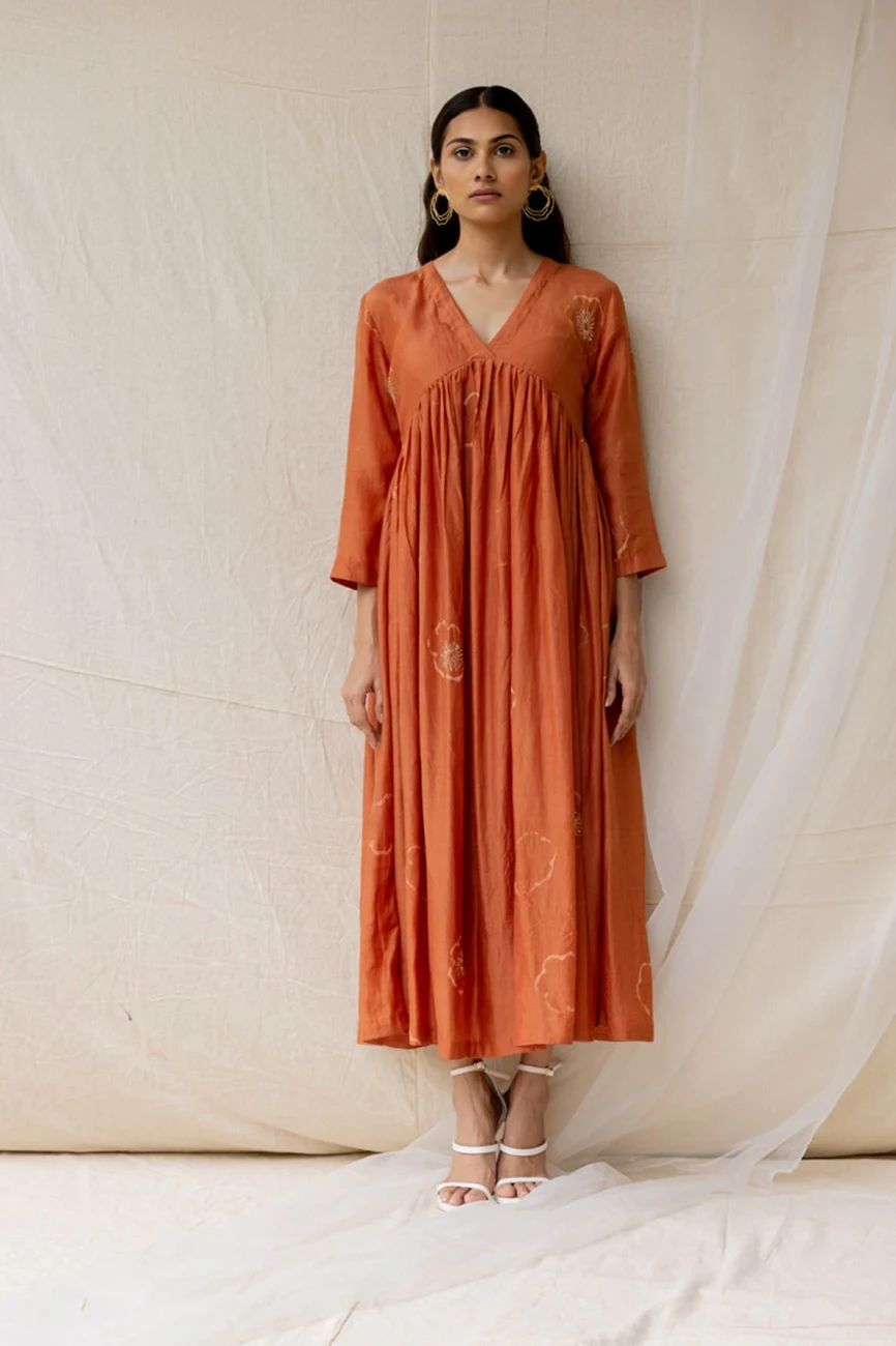 - Gathers at upper bust with an ease of flow bringing freshness in silhouette and complimenting the discharge poppies providing absolute comfort