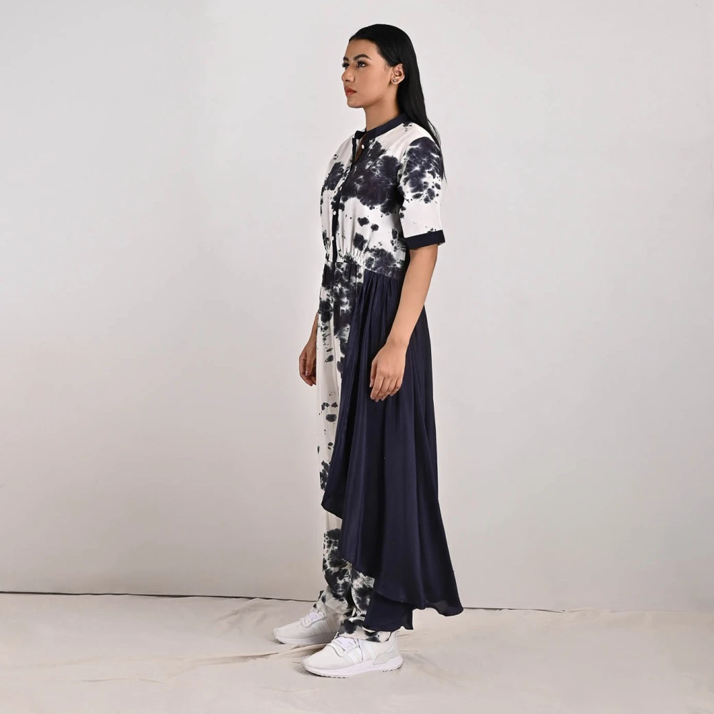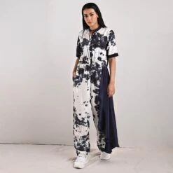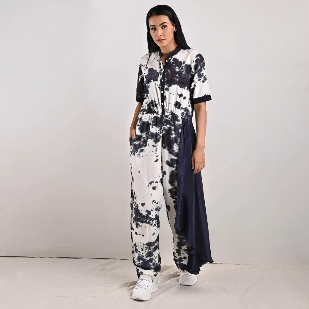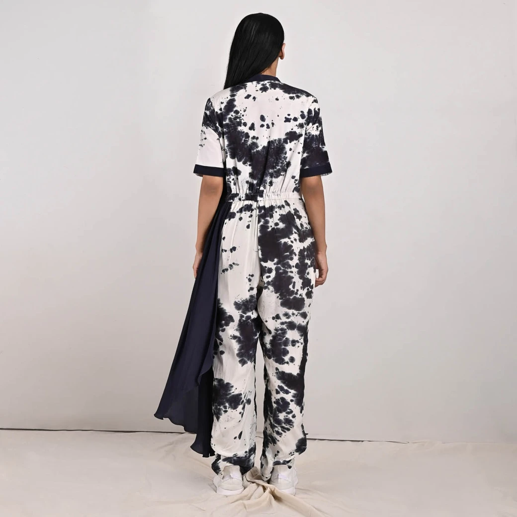 - This tie & dye buttoned-down jumpsuit is easy-breezy, attached with a flare