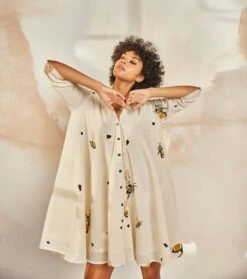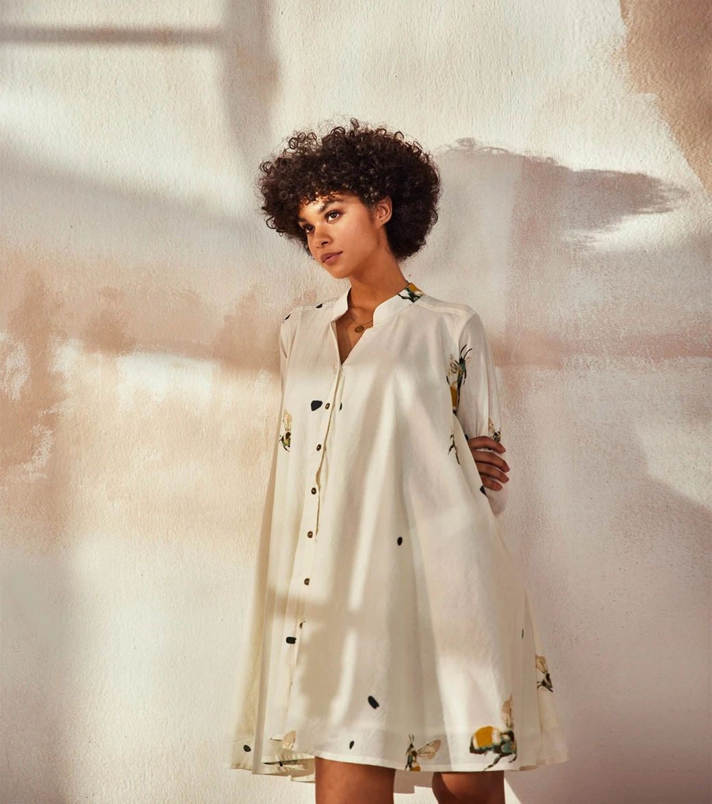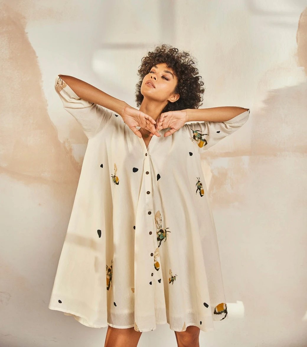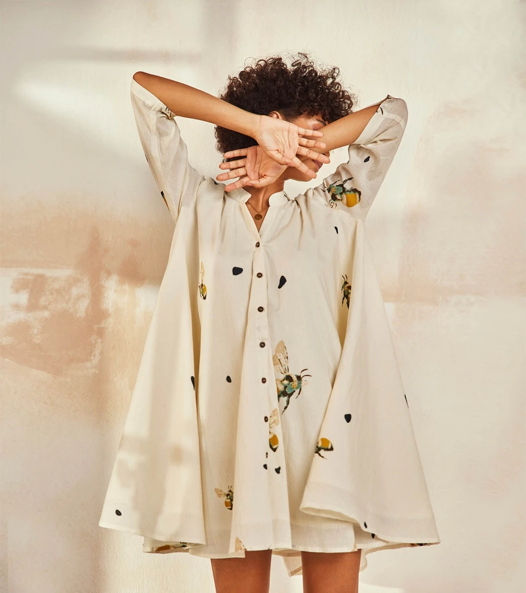- Bee printed shirt dress with an anti-fit style to give you a relax and soothing day