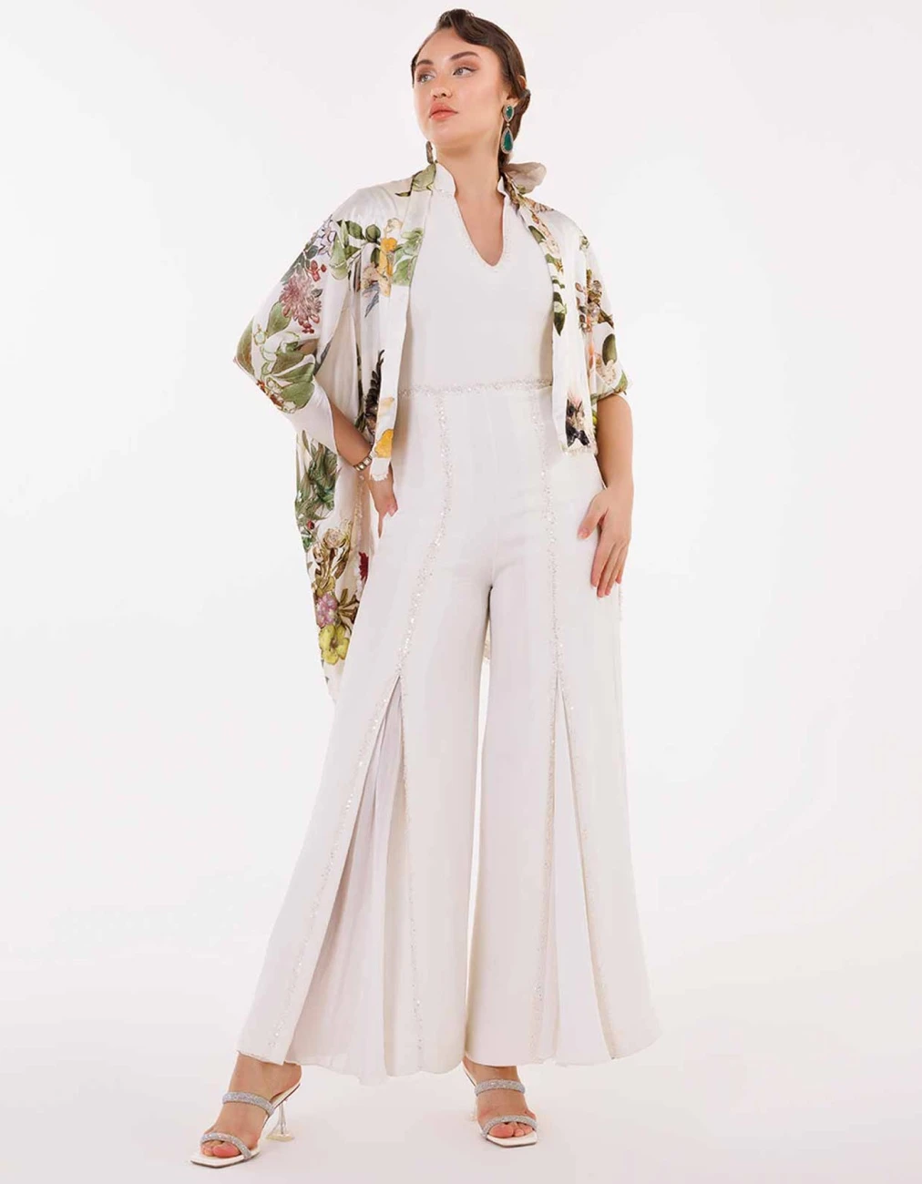 - Featuring the white jumpsuit with jacket
